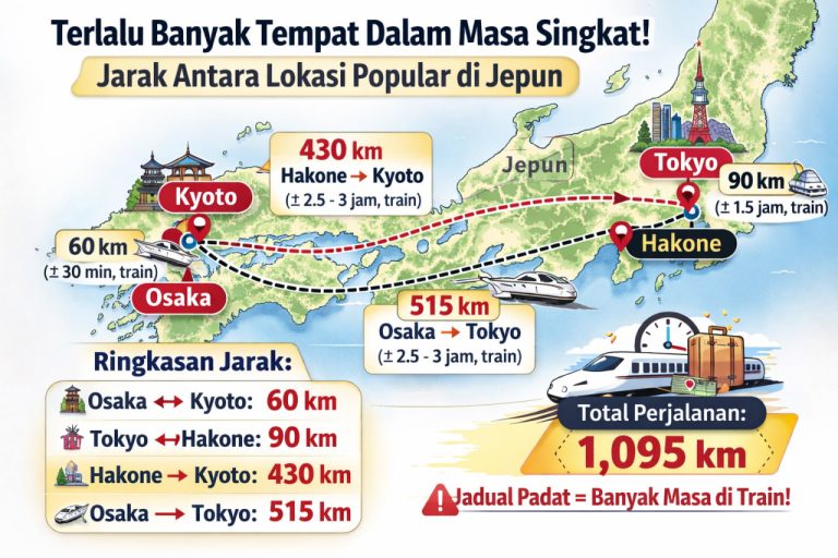Jepun lebih sesuai dinikmati dengan perancangan yang realistik. Untuk 4 hingga 6 hari, fokus kepada satu atau dua kawasan sahaja sudah memadai untuk pengalaman yang lebih tenang dan berkualiti.